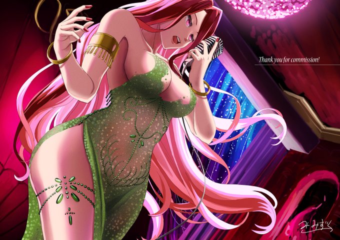 Skeb納品しました。セクシーな衣装と褐色肌の眩しい狐耳Vtuberさんです!食べることが好きと紹介されていたので、果物を食べている感じにしてみました!リクエストありがとうございました! skeb.jp/@mimizuku_suan… #Skeb #Commission @skeb_jpより