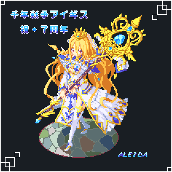 8周年おめでとうございます! #アイギス8周年アートコン 応募規約の「既存のアートや写真をそのまま用いたものや加工したもの」に該当するか微妙なので、普通のドット絵も添えて。