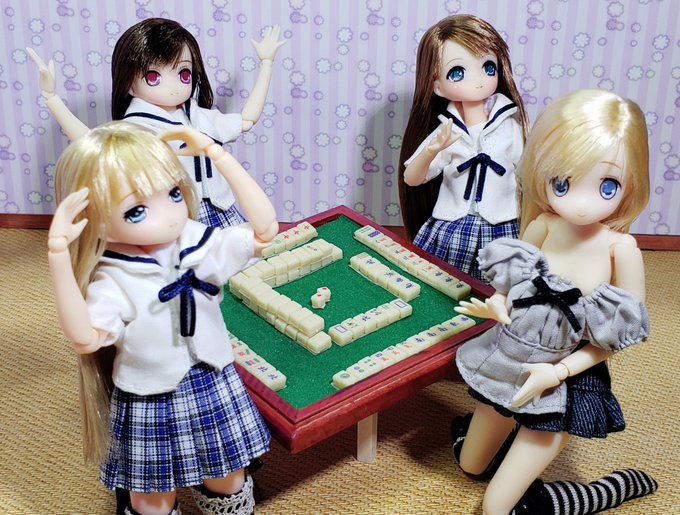 #今夜のドール撮影120分一本勝負 お題『ぬぐ』過去 ライリ 『Oh! 負けたので1枚脱ぎますね...😲』 「脱衣麻雀」と言う名の、片寄った日本の知識を持つライリちゃん😅 #ピコえっくすきゅーと #アゾカツ #azone
