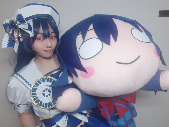 ~テラジャンボ寝そべり海未ちゃんと2ショットコスプレシリーズ~ これからもテラジャンボ海未ちゃんを愛でていきたい!!大切にする!! #cosplay #園田海未誕生祭2023 #園田海未生誕祭2023