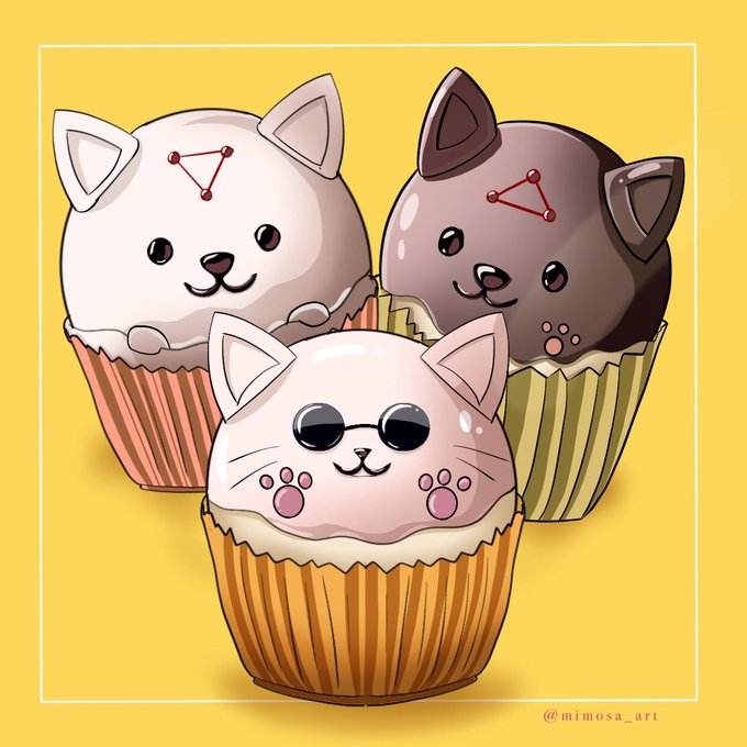 玉犬&ごじょねこカップケーキ🧁 息抜きに描いたよ😌✍️