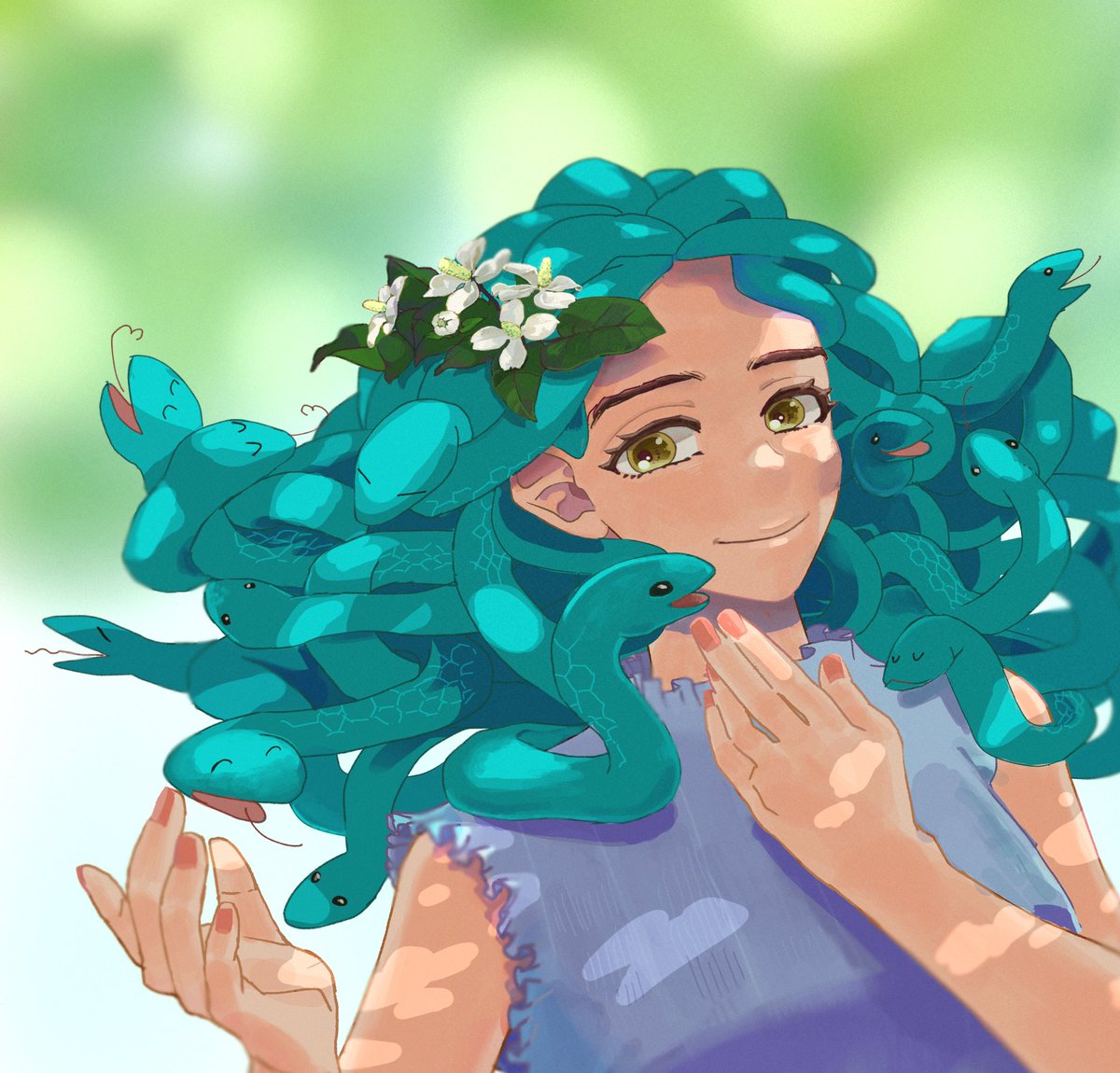 現代を生きるメドゥーサちゃん。 首から下だけおしゃインスタやってる。 調子こいたら自慢の髪の毛をヘビにされて、洞穴暮らしを余儀なくされて寝てる隙に首切られる、神話のメドゥーサちゃん可哀想すぎる。 #オリジナルイラスト #イラスト #ibisPaintX