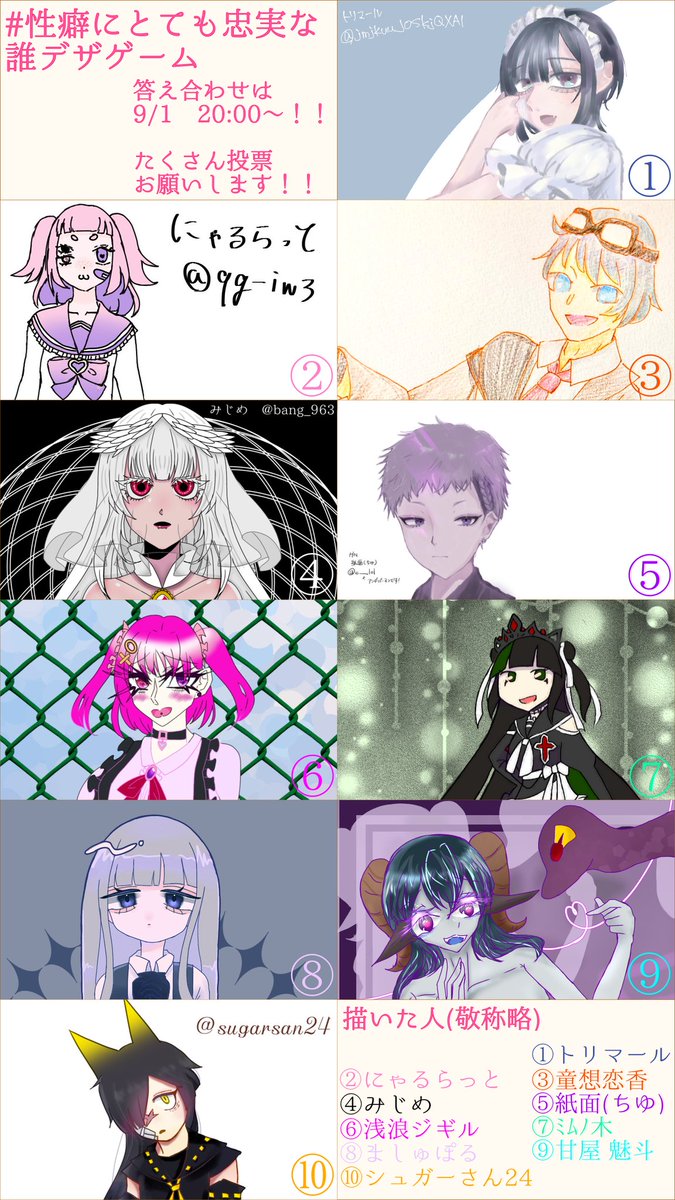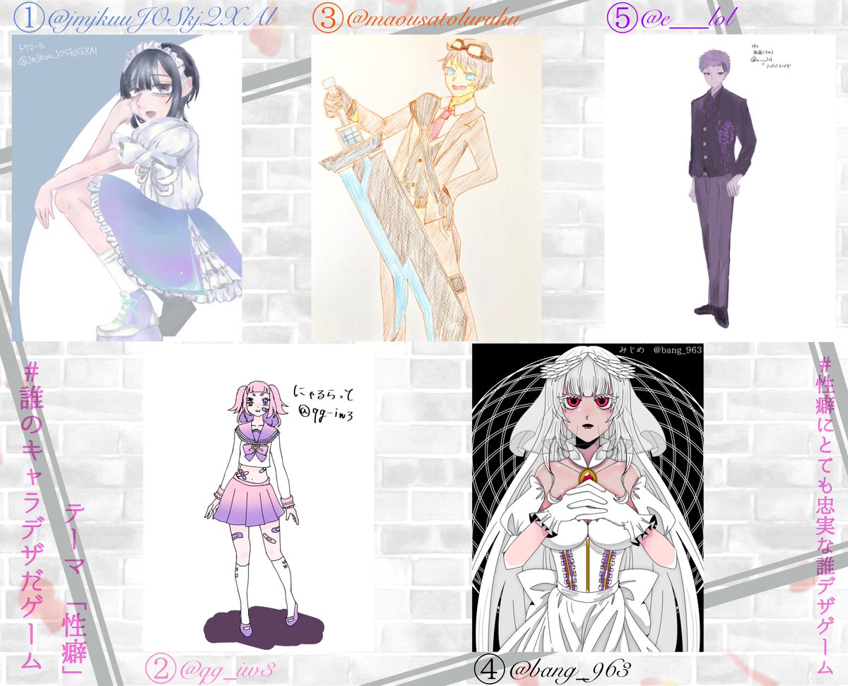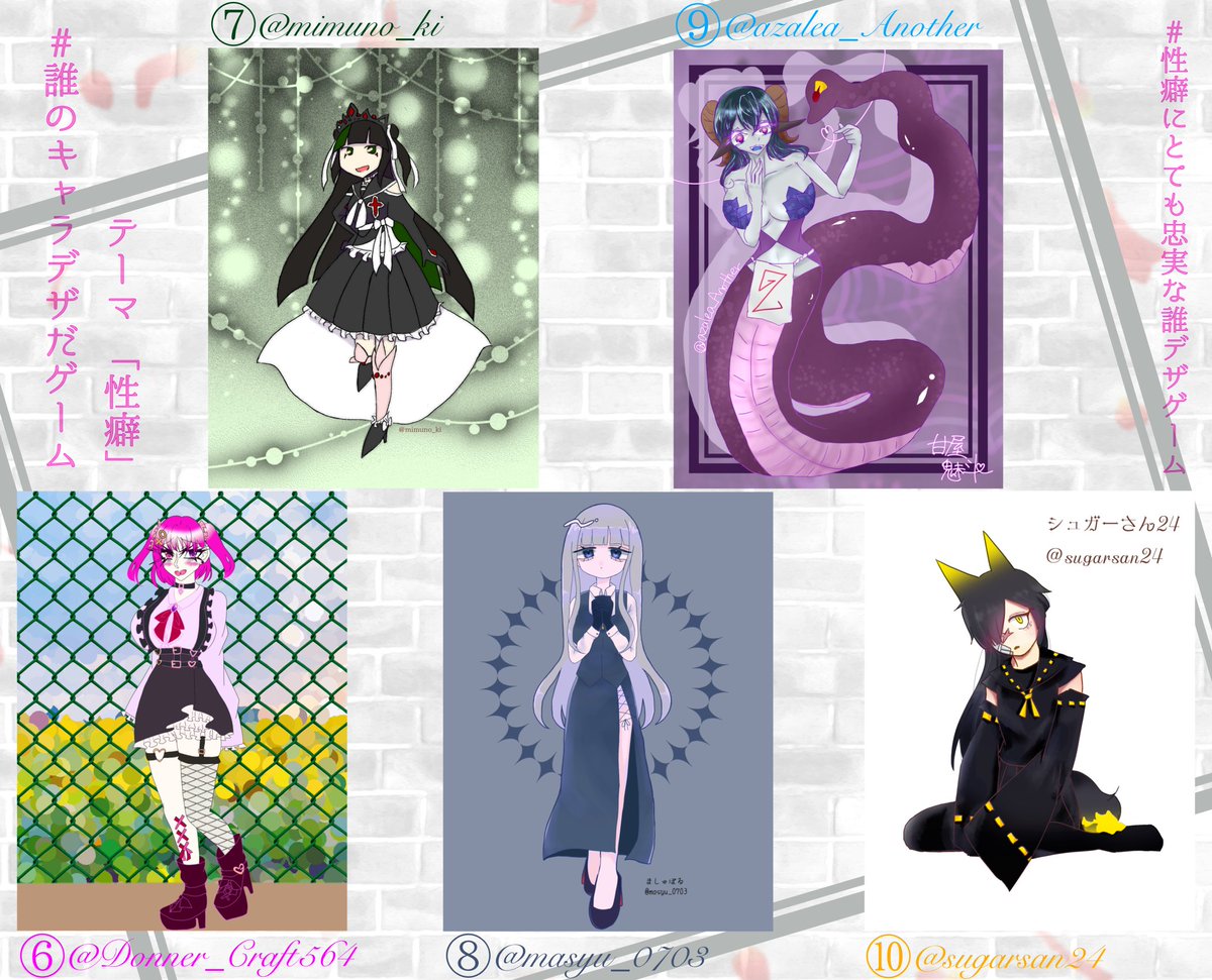 #性癖にとても忠実な誰デザゲーム #誰のキャラデザだゲーム 甘屋様主催のこちらのゲームに参加させていただきました 皆様素敵な絵ばかりで…本当にありがとうございます… 🌳は⑦の絵を描かせていただきました さて、私ミムノ木のデザインした絵はどれになりますか、よろしければご投票くださいまし…