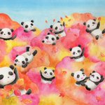 もちうさぎの星渡り #オリジナル #水彩色鉛筆 #絵墨 #アナログ #動物 #うさぎ #宇宙 pixiv.net/artworks/92384…