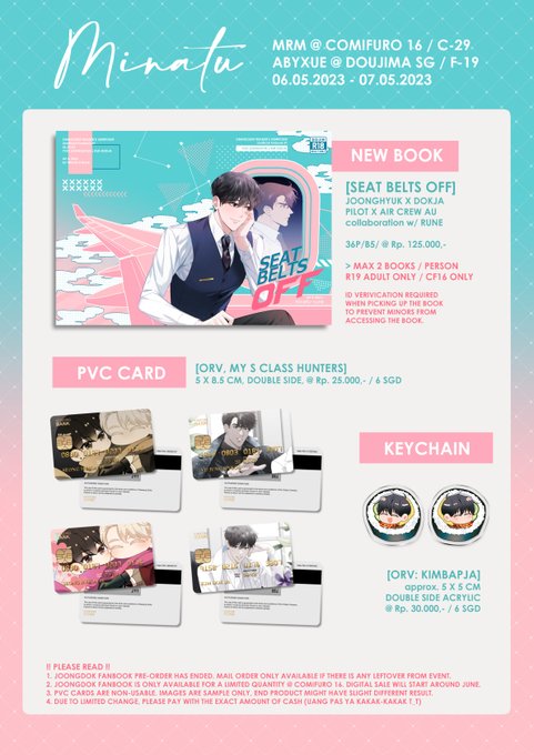 [RT appreciated❤️] My CF16 catalog! I'll be at booth C29 with Mio and Roka. Pick up pre order will be start from 21 FEB 2023, 19:00 WIB. Please check the carrd for rules & tba form link: minatucf16.carrd.co Sample for doujinshi will be up on 21 FEB 2023~ #comifuro16