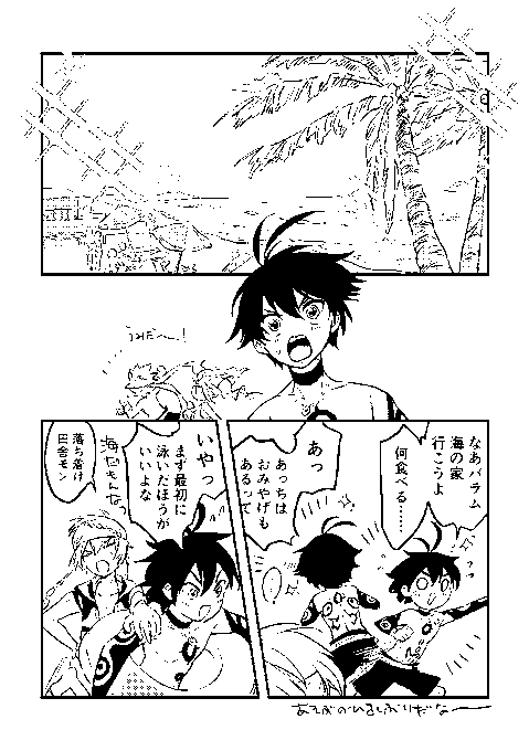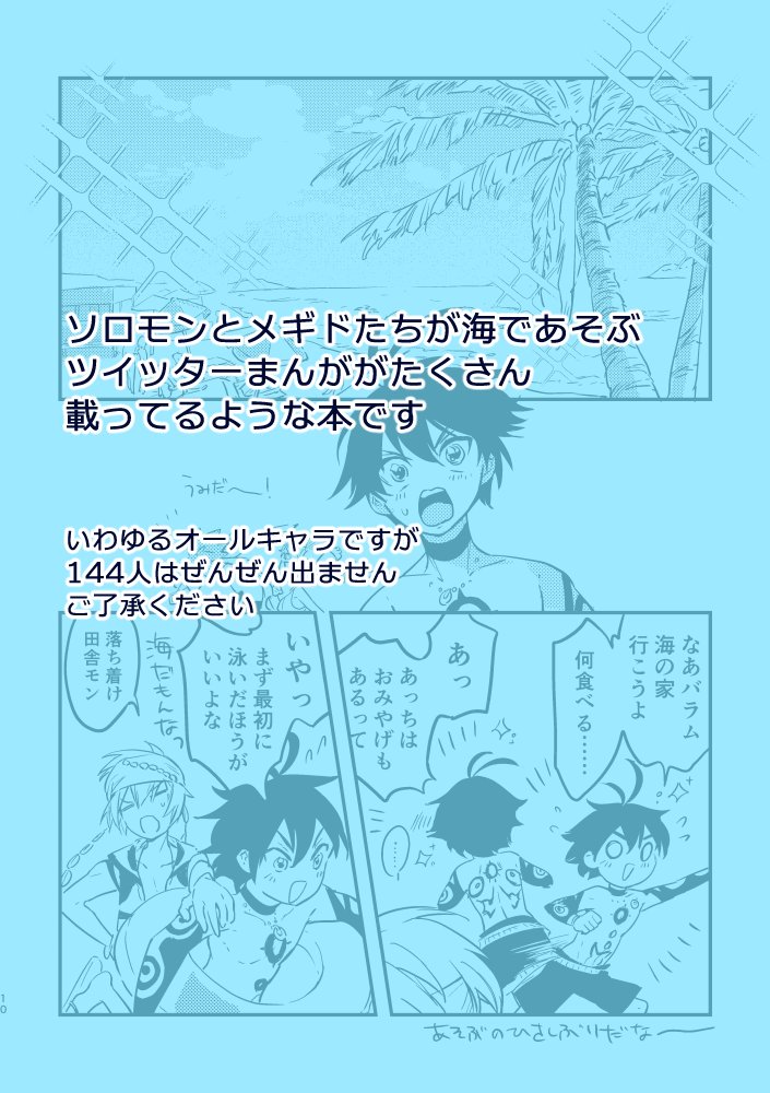 【同人誌サンプル】メギドたちが海でワイワイする本です!【入稿しました】 オールキャラのギャグってかゆるめの話詰め合わせになります。 7/30のゴエリンにて頒布予定です