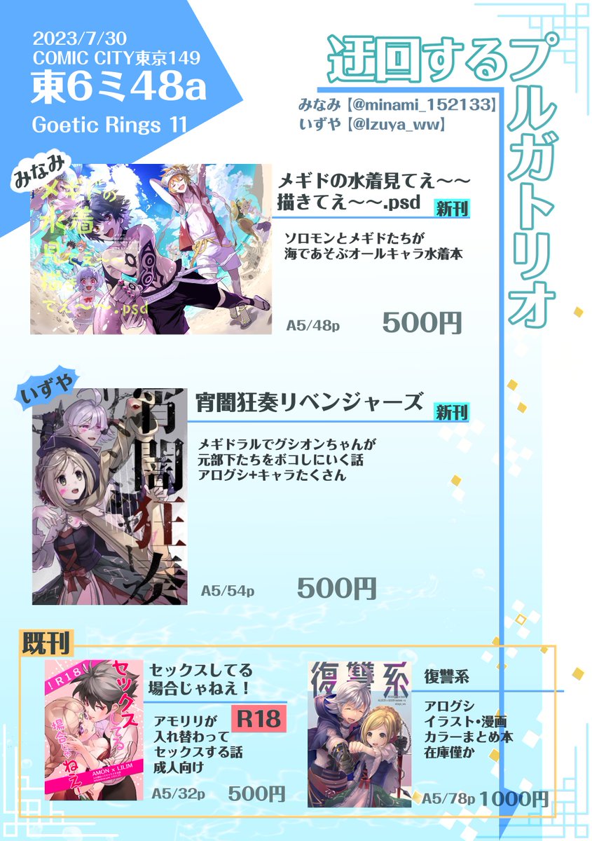 41 73 【同人誌サンプル】メギドたちが海でワイワイする本です!【入稿しました】 オールキャラのギャグってかゆるめの話詰め合わせになります。 7/30のゴエリンにて頒布予定です 23/07/17 21:59