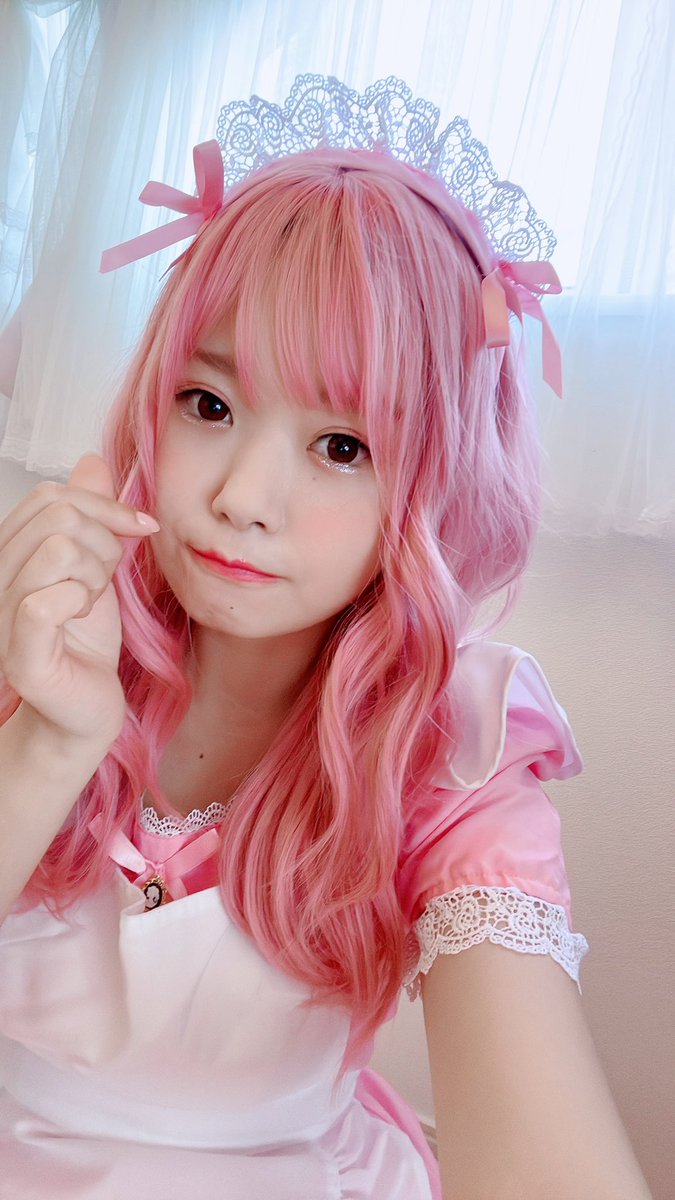 三つ編みバージョン👧🏻💕 お友達のマイホームがスタジオすぎて🏠📸笑 宅コスには最適すぎる🥺✨ ※全身はセルフタイマーです🤣笑 メイクまで全部ピンクにしました👀💓 #ピンクメイド #宅コス #ハロウィン2021 #HALLOWEEN