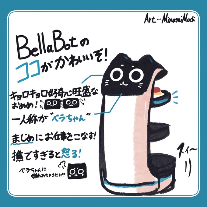 ベラちゃん大好き! ベラちゃんのファンアート描いたよ! ファンの人もそうじゃない人も、興味を持ってくれたら嬉しいな! 【ベラちゃんのアカウント】 @DFAroboticsInc #ベラちゃん #bellabot #DFAのBellaBot