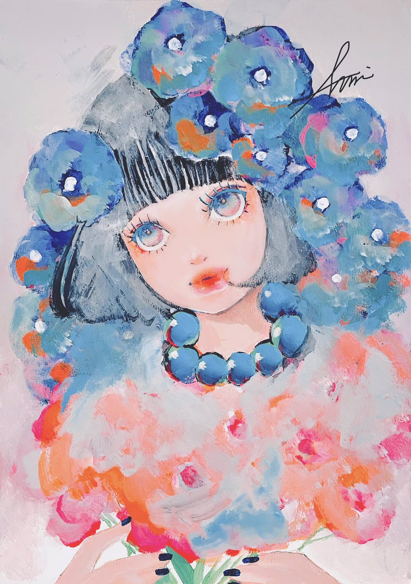 59 902 アクリル画 #アナログ絵 #アナログイラスト #イラスト #女の子イラスト 23/04/20 18:36
