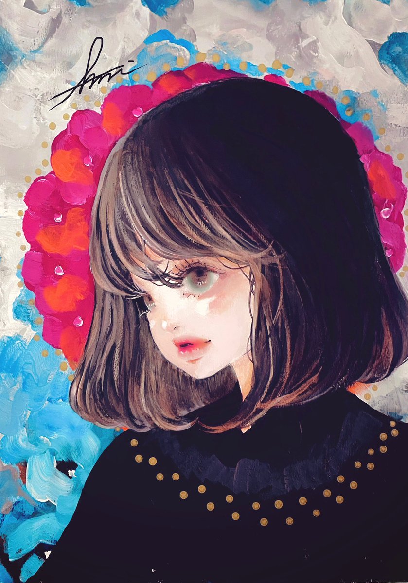 アクリル画 描きましたー #アナログイラスト #イラスト #女の子イラスト #アナログ絵で魅せてみよ