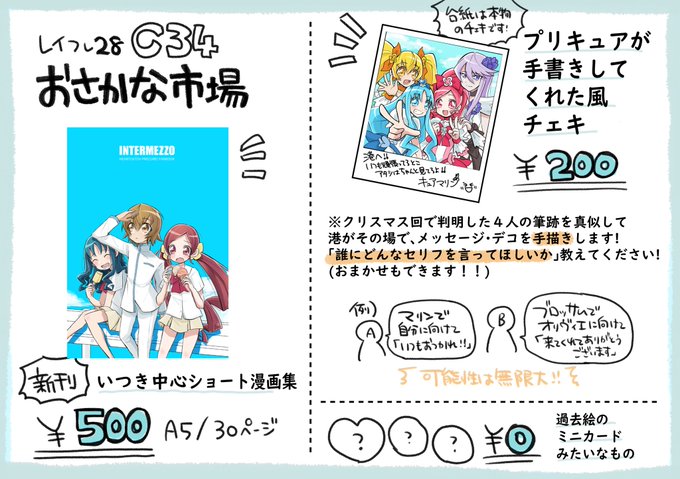 当日ですが #レイフレ28 おしながき🌻 新刊に加えて、チェキらくがきやってます〜 推しの手書き(風)チェキ欲しい方、よければ遊びに来てください🤍 twitter.com/minamito12/sta…