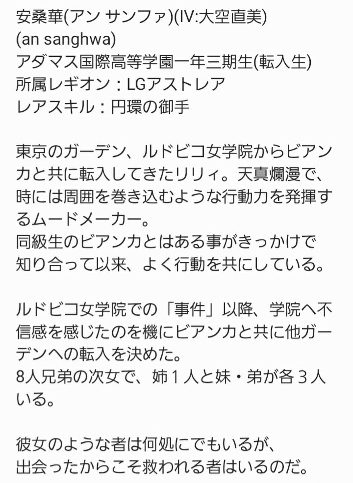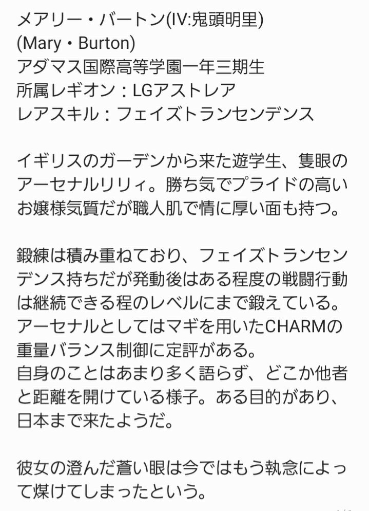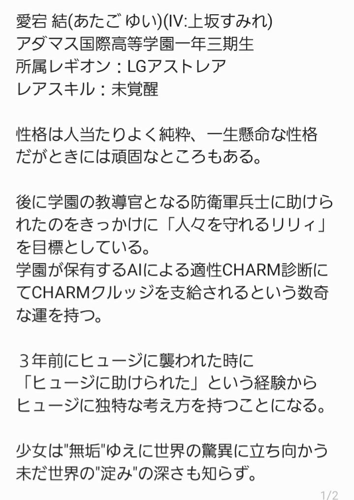 みんな結構オリジナルリリィの設定を考えているので自分も一つ。 性格考えるのって結構難しいのね。 ちなみに名前の横の「IV」は イメージボイスの略。 後々加筆するかもです。 #アサルトリリィドール部 #オリジナルリリィ