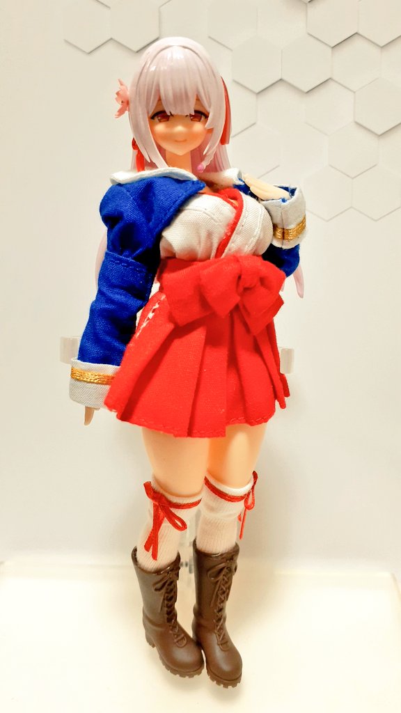 #アサルトリリィ #アサルトリリィドール部 ACT-kNife(@heppoco_seijin )さんの 船田初さまの完成。 専用衣装が入手出来なかったので 御台場制服とミニ巫女服を組み合わせて自作。 次はチャームか… ※他にも写真あります↓