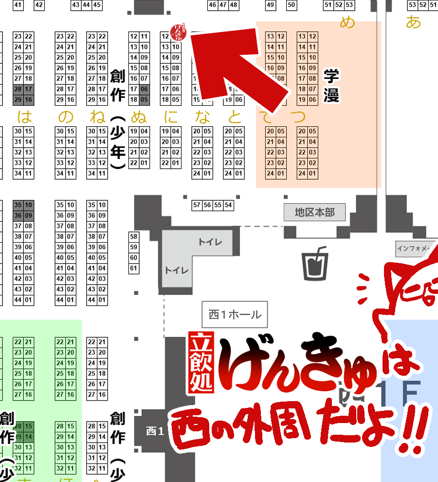 あなたのサークル「立飲処げんきゅ」は、コミックマーケット101で「土曜日西地区 "に " 11a」に配置されました!コミケWebカタログにてスペース配置場所公開中です! webcatalog.circle.ms/Circle/Map/168… #C101WebCatalog