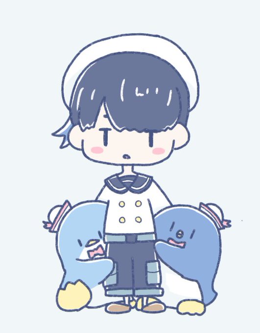 🐧のとびユニブロマイドの 等身イラスト首元開いてて そわそわしてる_(:3 」∠) #たけぉぇかき