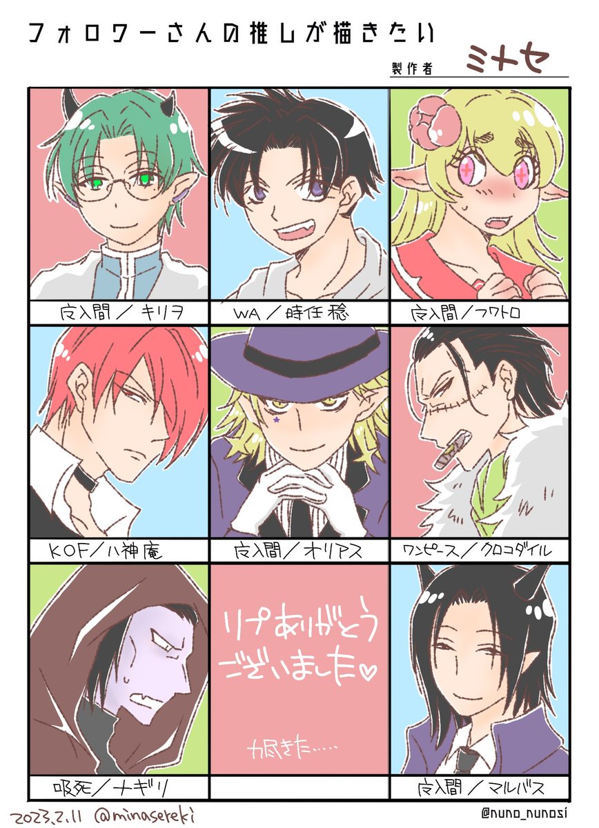 3 23 #フォロワーさんの推しが描きたい 描かせていただきました! リプありがとうございました~💕 私の推しもいっぱい🥰🥰 23/02/11 14:45