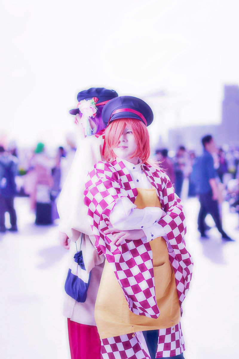 #例大祭16 #例大祭コスプレ #東方男体化 九代目御阿礼の子と貸本屋の倅 稗田阿求:與七 本居小鈴:えふえぬ(@FN_Trix ) 撮影:天野さん(@ToadstoolLayer)