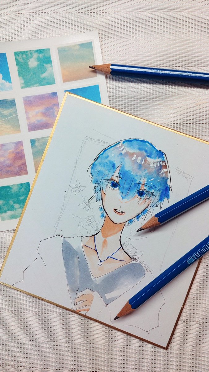 #イラスト #オリジナル #コピック #リメイク 「パールブルー」