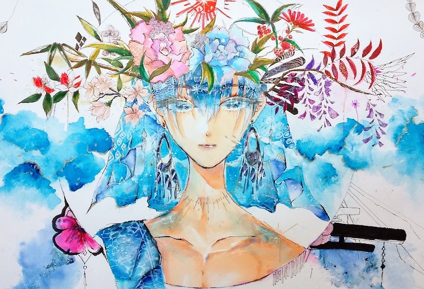 #イラスト #オリジナル #透明水彩 #コピック #青 「価値創造」