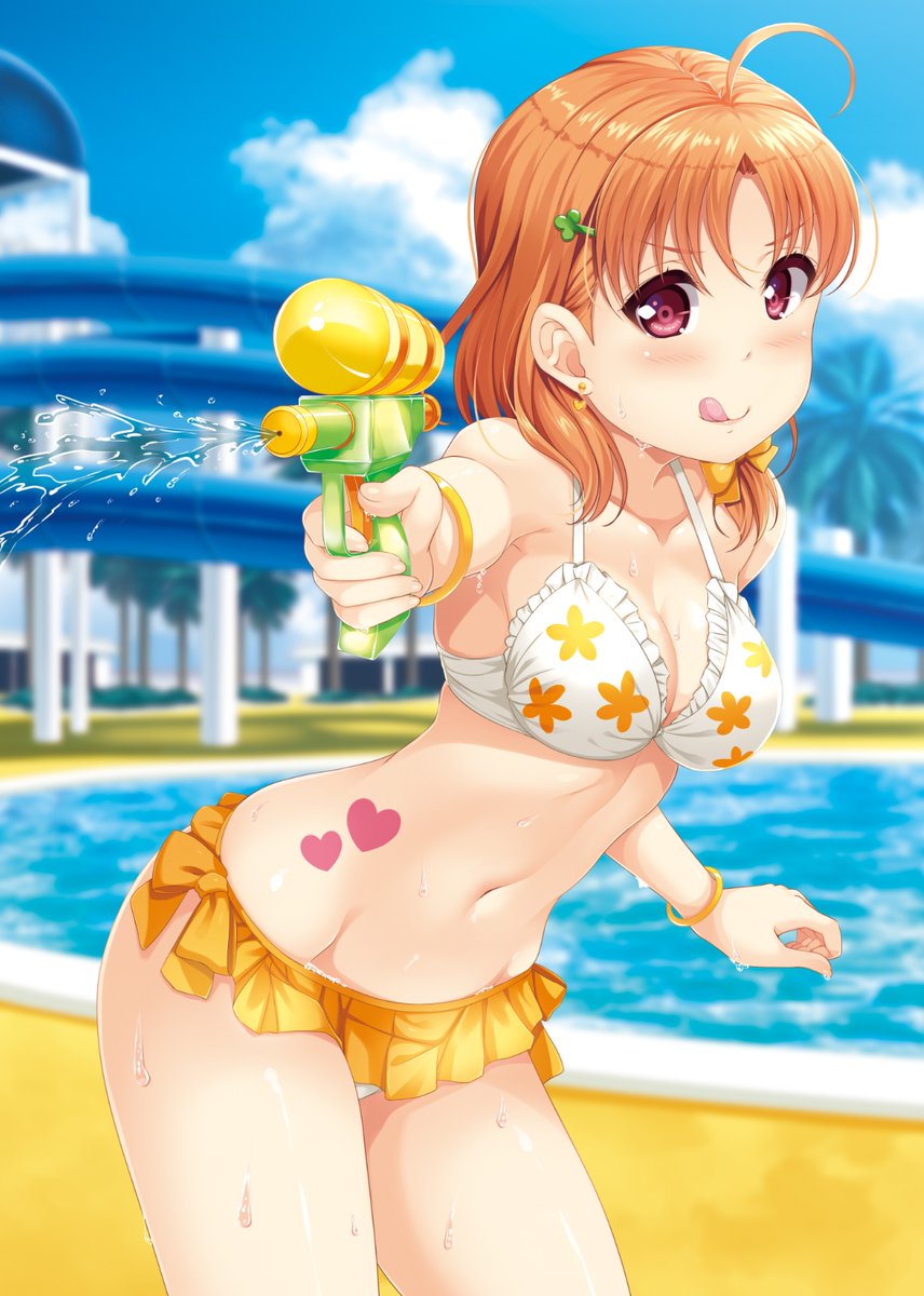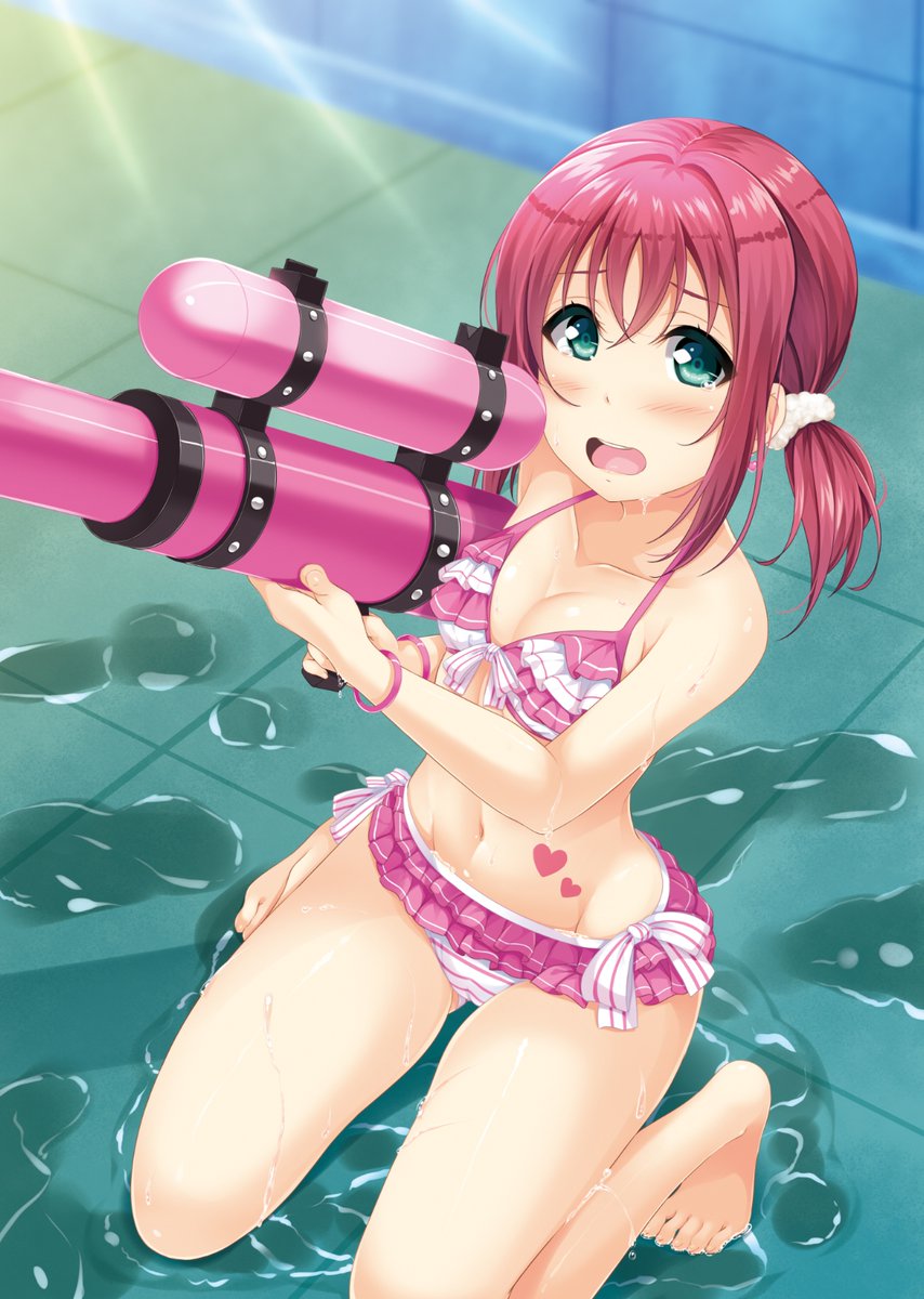 水鉄砲で遊ぶしゃろんちゃん。 ❤のタトゥーシールに当たるとライフが減ります(というルール)