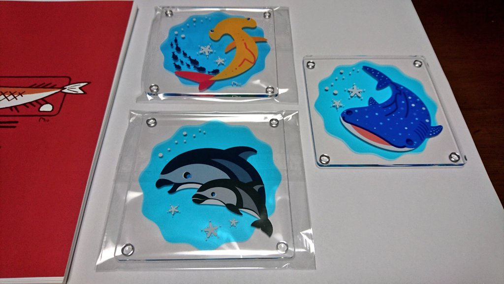 3 16 クリマにむけて新作です🐬クロッキー帳、コースター、キーホルダーです。 18/11/25 21:37