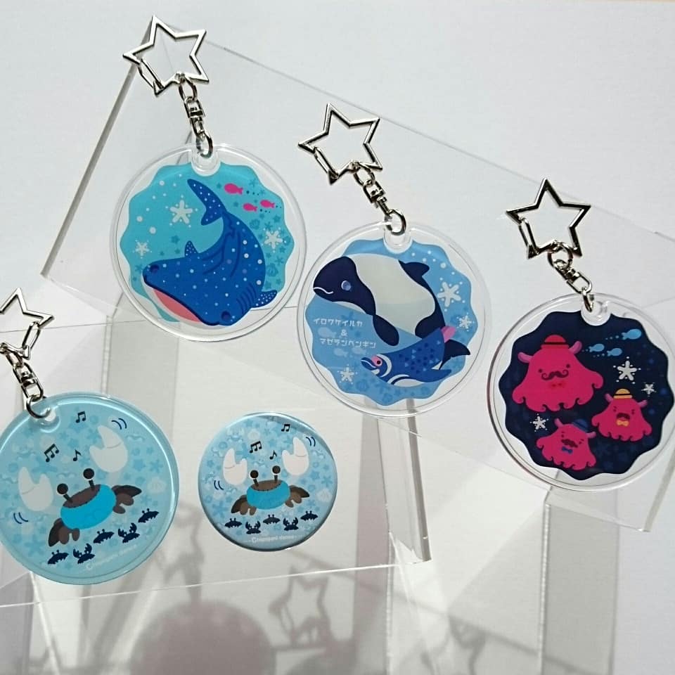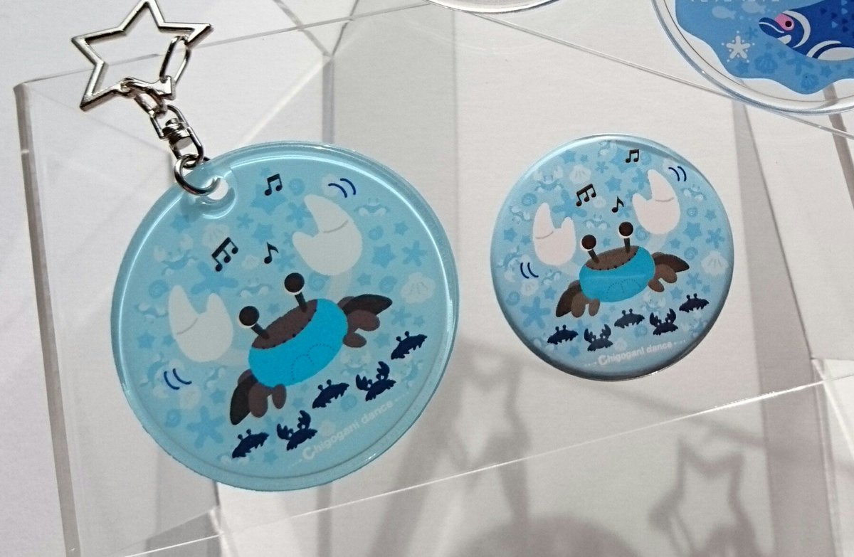 こんにちは お久しぶりです。 今度つくしチームさん企画の「いきものづくし」に参加します。 やわらかクリアキーホルダーやダンスをするチゴガニ缶バッジを置く予定です。詳細はまたご連絡します🐟~