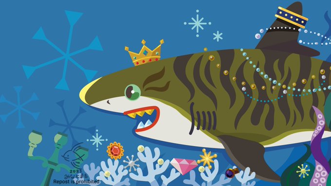 タイガーシャークと宝物を描きました🦈