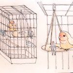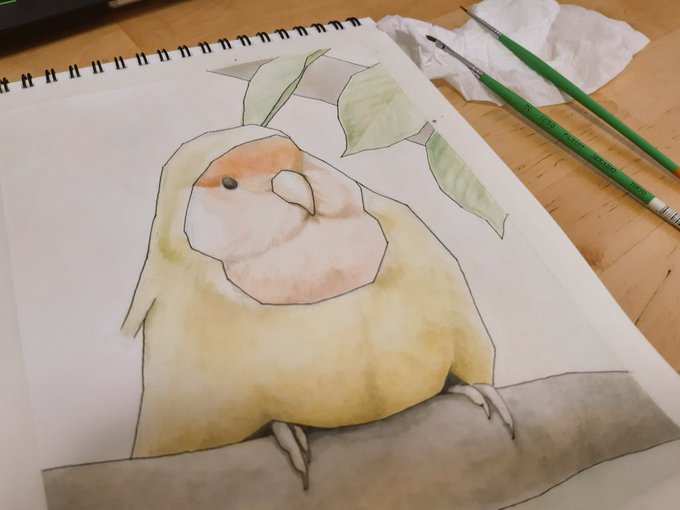 小さい絵を描いてみましたが、小さいからと言って簡単とかはないですねw インコのカップル #サザナミインコ #鳥好きさんと繋がりたい #絵描きさんと繫がりたい #artwork #ArtistOnTwitter