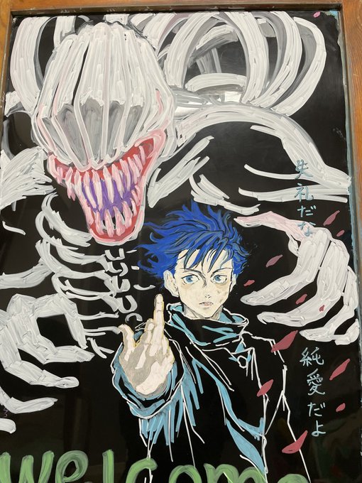 仕事しながらポスカでお絵描き〜ポスカもっと色あればいいのになぁ😑 #ウェルカムボード #イラスト #呪術廻戦