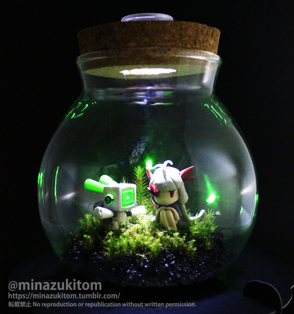【再販】#ボイド・テラリウム トリコとお世話ロボット 瓶詰め滅茶苦茶やりたくて作ったので、完成できて感無量です ゲーム1周年にお披露目できました!遂に幕張に飾れるのか…?! #WF2022S #WF2022夏