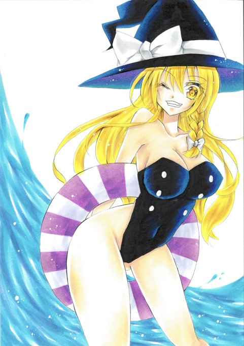 夏はハイレグ魔理沙描かなきゃ ビキニも好きだけどハイレグも好き #東方Project #霧雨魔理沙 #コピック #イラスト