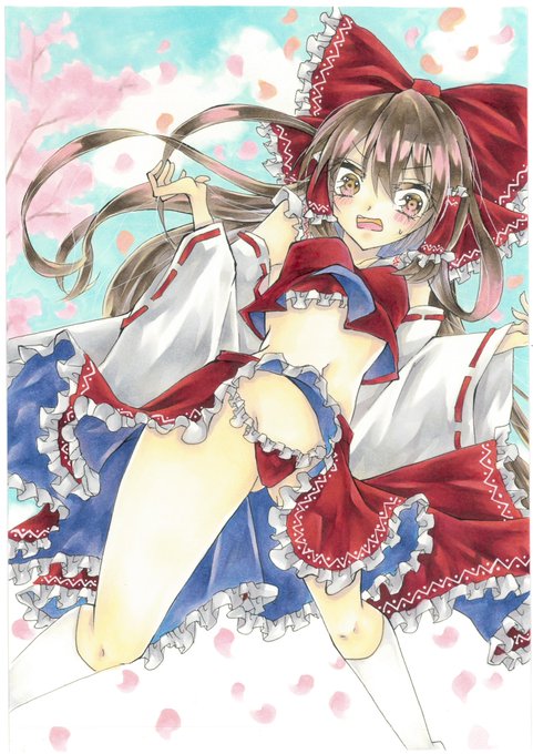 6 32 春一番! ホワイト入れて、スキャンしました〜 #東方Project #コピック #アナログイラスト #博麗霊夢 #絵描きさんと繋がりたい 23/03/23 21:31