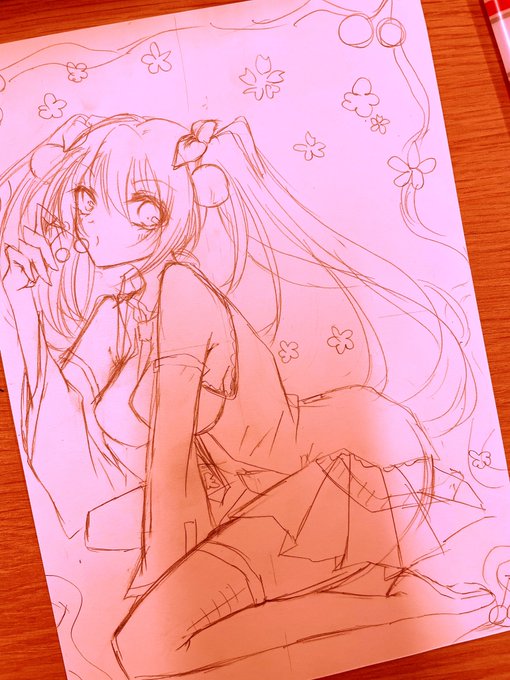 桜の季節の間に完成するのか、乞うご期待 #桜ミク #初音ミク #ボカロ #コピック #アナログイラスト #イラスト #絵描きさんと繋がりたい