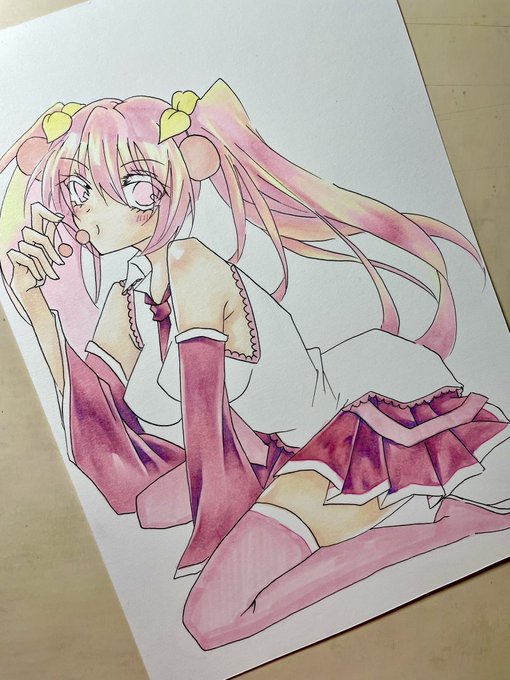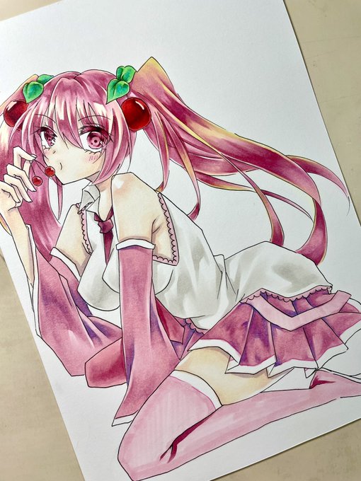 #桜ミク #初音ミク #ボカロ #コピック #アナログイラスト #イラスト #絵描きさんと繋がりたい スキャンした〜!!自宅にまともなスキャナが欲しい…