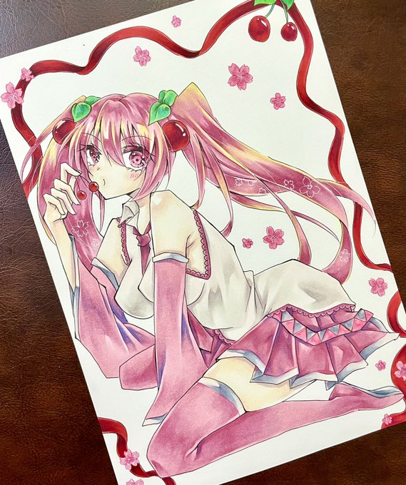 2 14 #桜ミク #初音ミク #ボカロ #コピック #アナログイラスト #イラスト #絵描きさんと繋がりたい スキャンした〜!!自宅にまともなスキャナが欲しい… 23/03/31 22:16