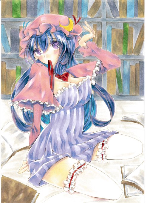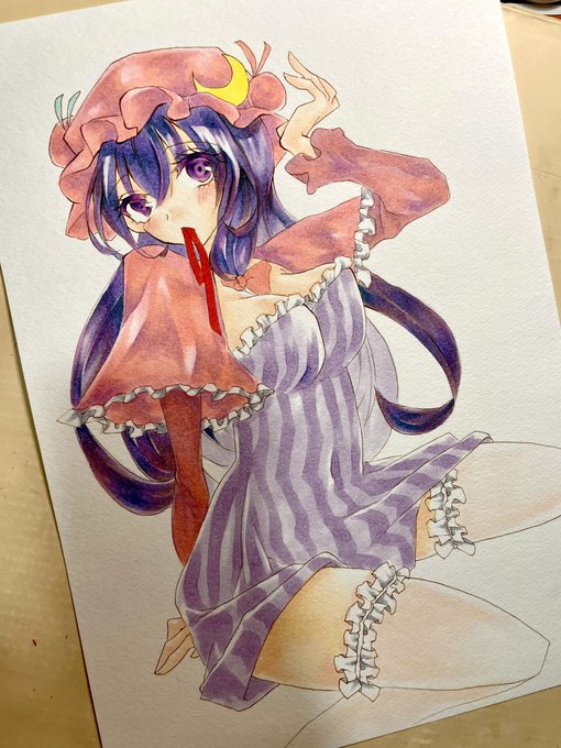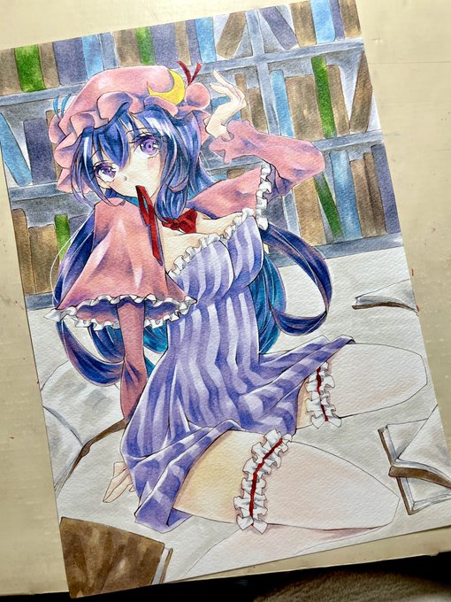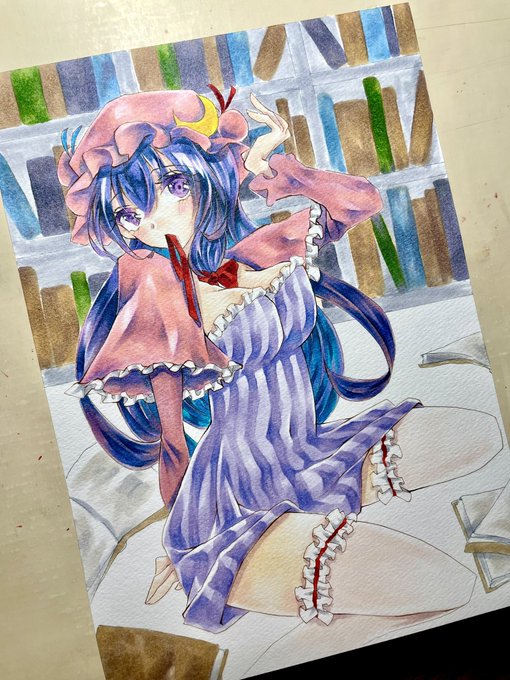 下絵の時に写真撮ってた気がしたけど撮ってなかった #東方Project #アナログ絵 #コピック #パチュリー・ノーレッジ