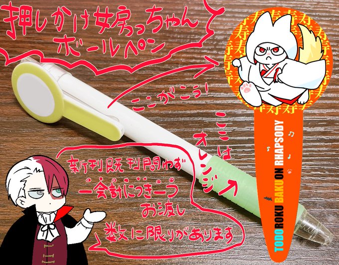 【轟爆ラプソディ】お品書き【6/25】 | ミネコ #pixiv pixiv.net/artworks/10920… そりゃーー!!!!!!!!!ノベルティはボールペンです精一杯ジュ~ンブライドっぽくしてみました😄現物は会場で確認なのでドキドキ……!