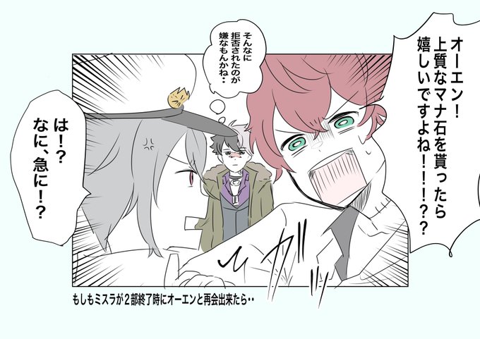 今更だけど、あの場にオーエンいなかったから、改めてミスラの愚痴に巻き込まれるんじゃないの?オーエン。 #まほやく_FA