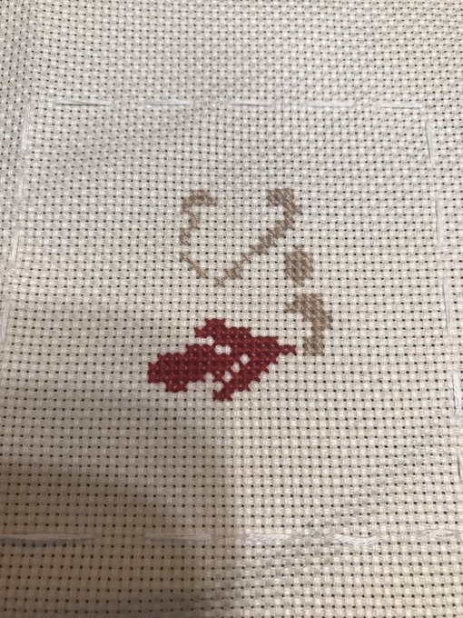 2 10 クロスステッチ_リス🪡01day 布が勿体無いので余らないように作りたいな〜🪡で余った部分でキーホルダーとかストラップとか作れるようになりたい⭐️ #夫のイラスト #クロスステッチ #handmade #ドット絵 #pixelart 22/05/05 17:58