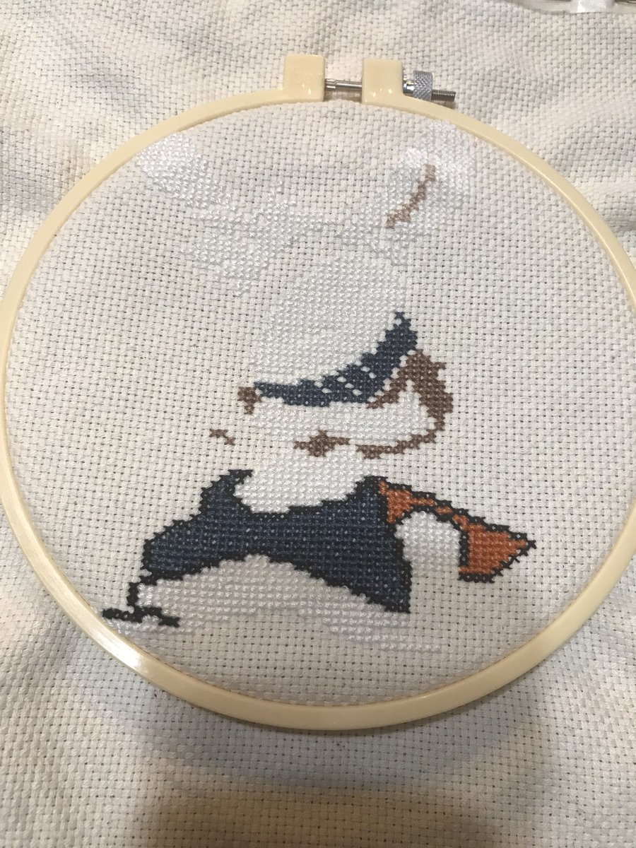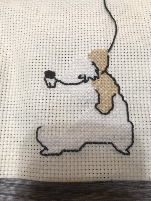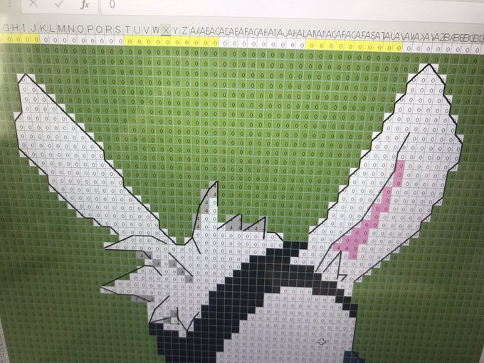 0 12 クロスステッチ_ウサギ試作🪡06day 昨夜、方眼印刷して試して早々に挫折して、結局Excel+ステッチして図案決める方向に戻しましたww 家事しないと〜 早く終わらせて午後もステッチしたい🪡 #夫のイラスト #クロスステッチ #handmade #ドット絵 #pixelart 22/06/03 09:34