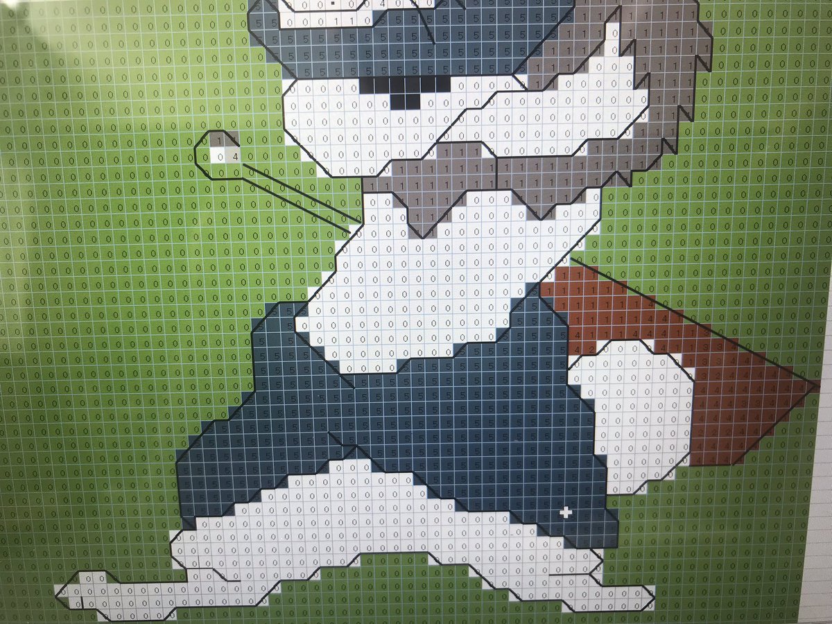 1 12 クロスステッチ_ウサギ試作🪡04~05day あれ?これ 方眼印刷して、×で塗り絵して、バックステッチの線引いた方が早く図案仕上がるんでない?と今更気付いた、わら だって、ズレすぎて、もはやペンで直接書いてる🖋ww #夫のイラスト #クロスステッチ #handmade #ドット絵 #pixelart 22/06/02 18:11