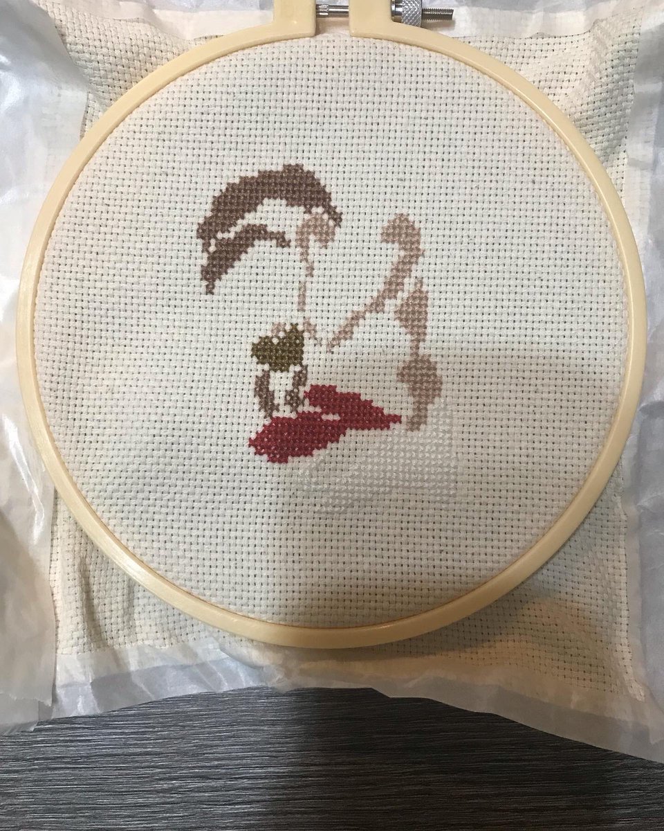 1 13 クロスステッチ_リス🪡02day 仕事後少しチクチク🪡 というのも明日はなんだかんだ少しでも不安を軽減するため講義の練習して 「あ〜仕事と家事しかしてない〜」 となるだろう. 「昨日刺繍できたし♪」 と言えた方がhappyに感じる😌 #夫のイラスト #クロスステッチ #handmade #ドット絵 #pixelart 22/05/08 23:17