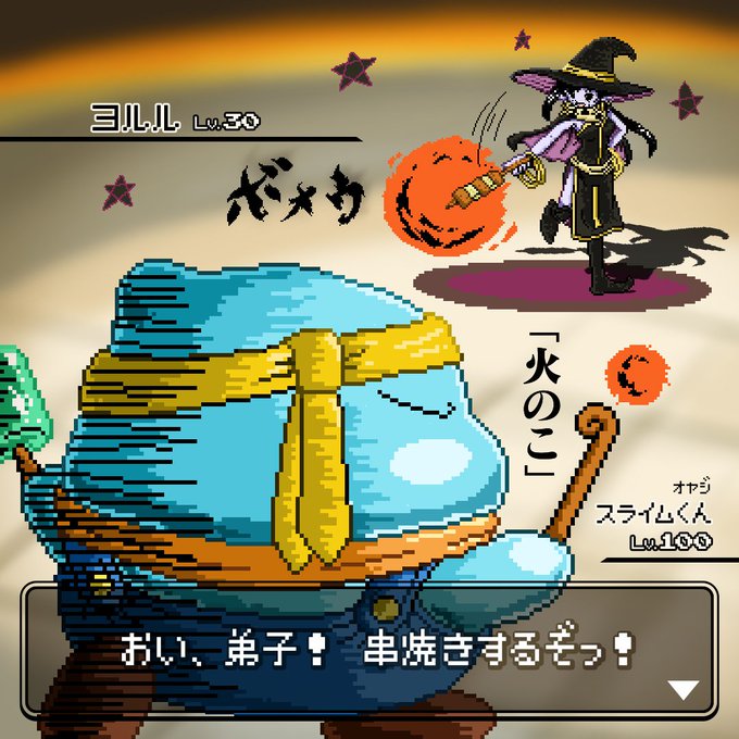★スライムライフ★ファンアート描きました〜😈(その2)U・ﻌ・Uっ✐✩.*˚ 火のこバトル💫🔥 インスタグラム↓(ラクガキあり) instagram.com/p/CFKH5INBmtk/ #スライムライフ #メガサワラ #webマンガ総選挙 #ジャンププラス #ドット絵 #ファンアート
