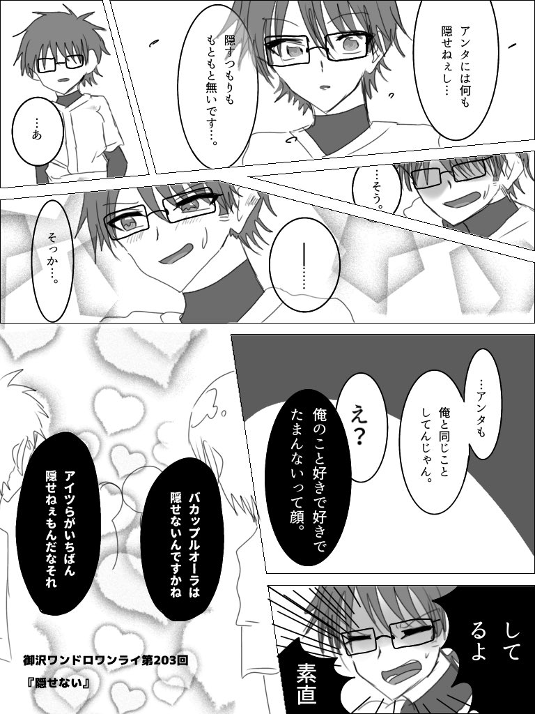 6 52 大遅刻失礼します🙇♀️ #御沢ワンドロワンライ 第203回 『隠せない』 ベッタベタの御沢です。付き合いたて。 21/11/06 23:59