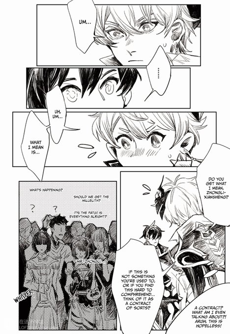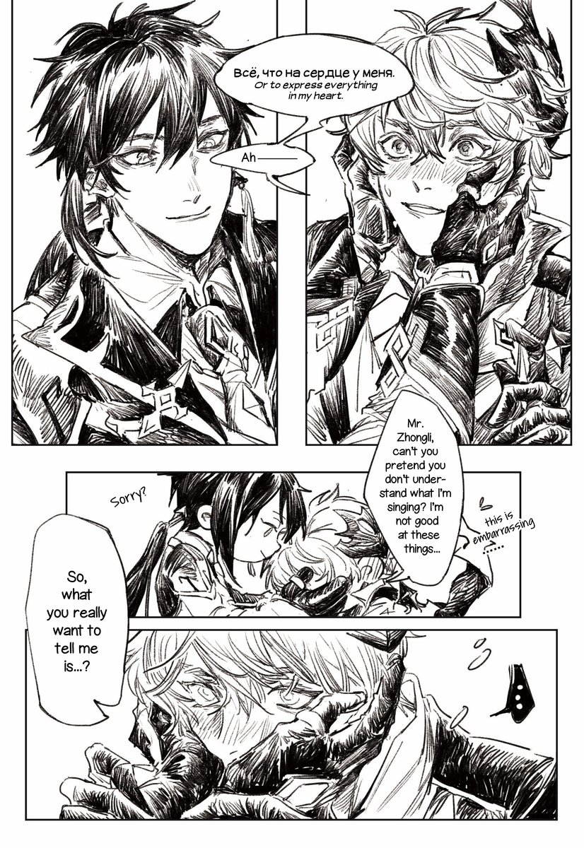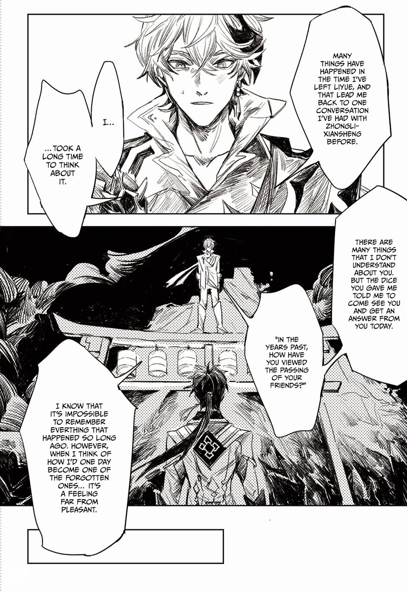 Happy birthday, Zhongli. Translation of @akiyu221b's short comic from a CN group project! #GenshinImpact #原神 #钟离先生生日快乐 #Tartali #HappyBirthdayZhongli P1/2—— After they met with little Zhongli and Lady Zhongli 😳
