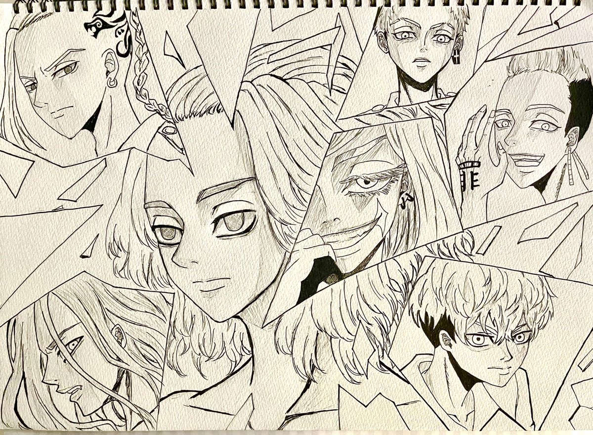 一週間集合絵、東京リベンジャーズ 完成しました!! 色ありと白黒バージョンを描きました! 毎日どんなキャラが出るのか楽しみで、描くのワクワクしてました✨✨ また挑戦したいです! 今度は武道当たってほしいな…笑 #奥さんとぼく東リベ #東京リベンジャーズ #東卍FA