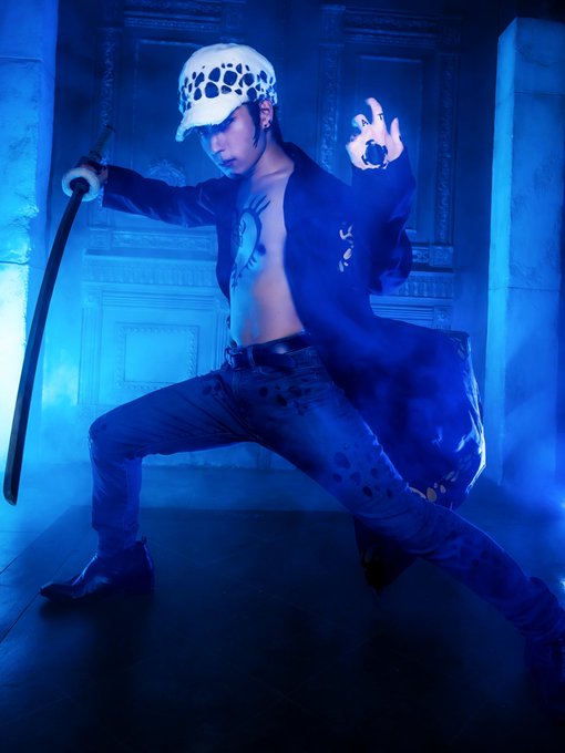 ONE PIECEワノ国併せ トラファルガー・ロー 表情の差分2枚とも好きやったんで載せちゃいます😇 この時間帯凄く映えるから好きやし、かっこよく撮ってくれてありがとう‼ photo すーみんちゃん @su_min0124 #0504ワノ国道頓堀 #アコスタ道頓堀