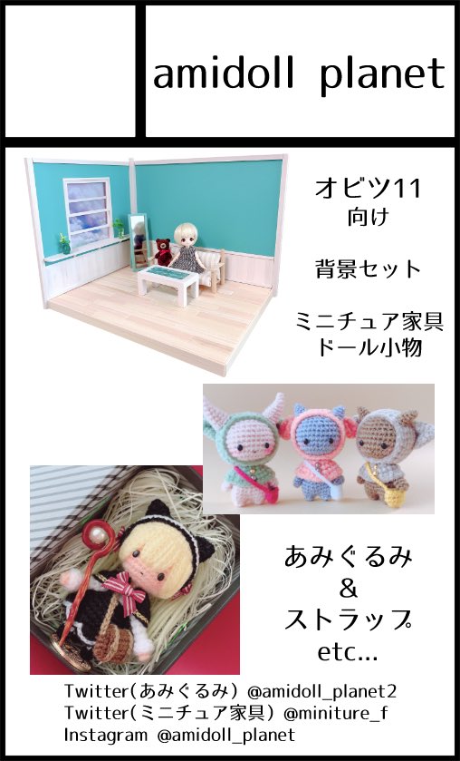 #アイドール大阪 9/23のアイドール大阪に出展します! ⭐️オビツ11(1/12スケール)用背景セット ⭐️ミニチュア家具・小物 ⭐️オリジナルのあみぐるみ など、たくさん持っていく予定です! よろしくお願いします🥰 #amidollplanet #あみプラ #あみぐるみ #オビツ11 #オビツろいど #ねんどろいどどーる