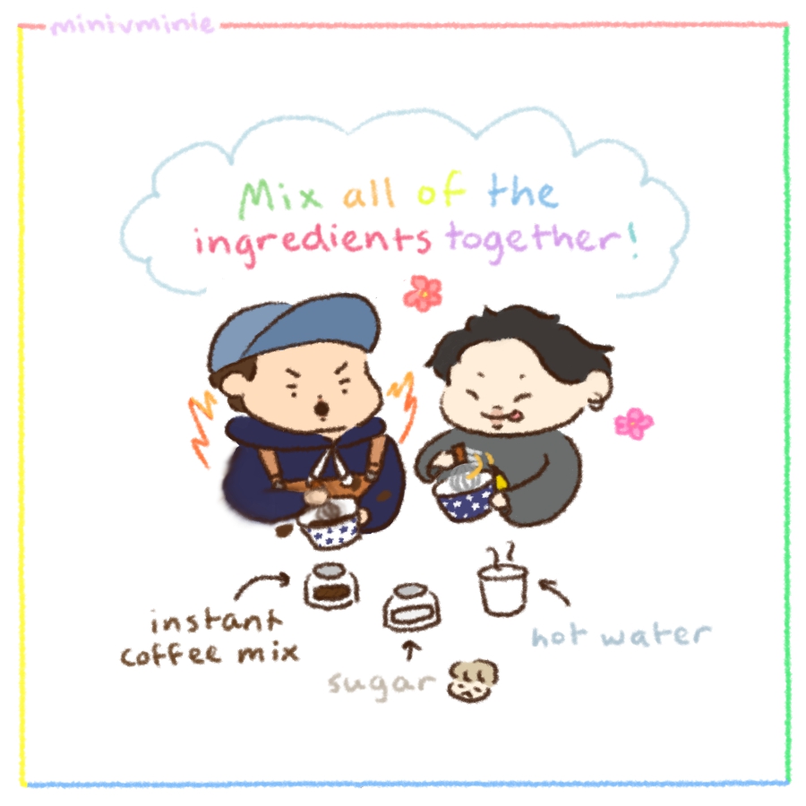 a mini moni dalgona coffee tutorial! 🐨🐥☕️ #minimoni #minjoon #nammin #minjoonfanart #btsfanart #NAMJOONfanart #jiminfanart #namjoon #jimin